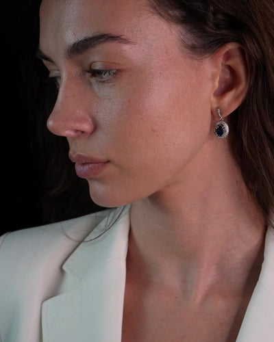 Brigida Halo Drop Earrings | Sapphire